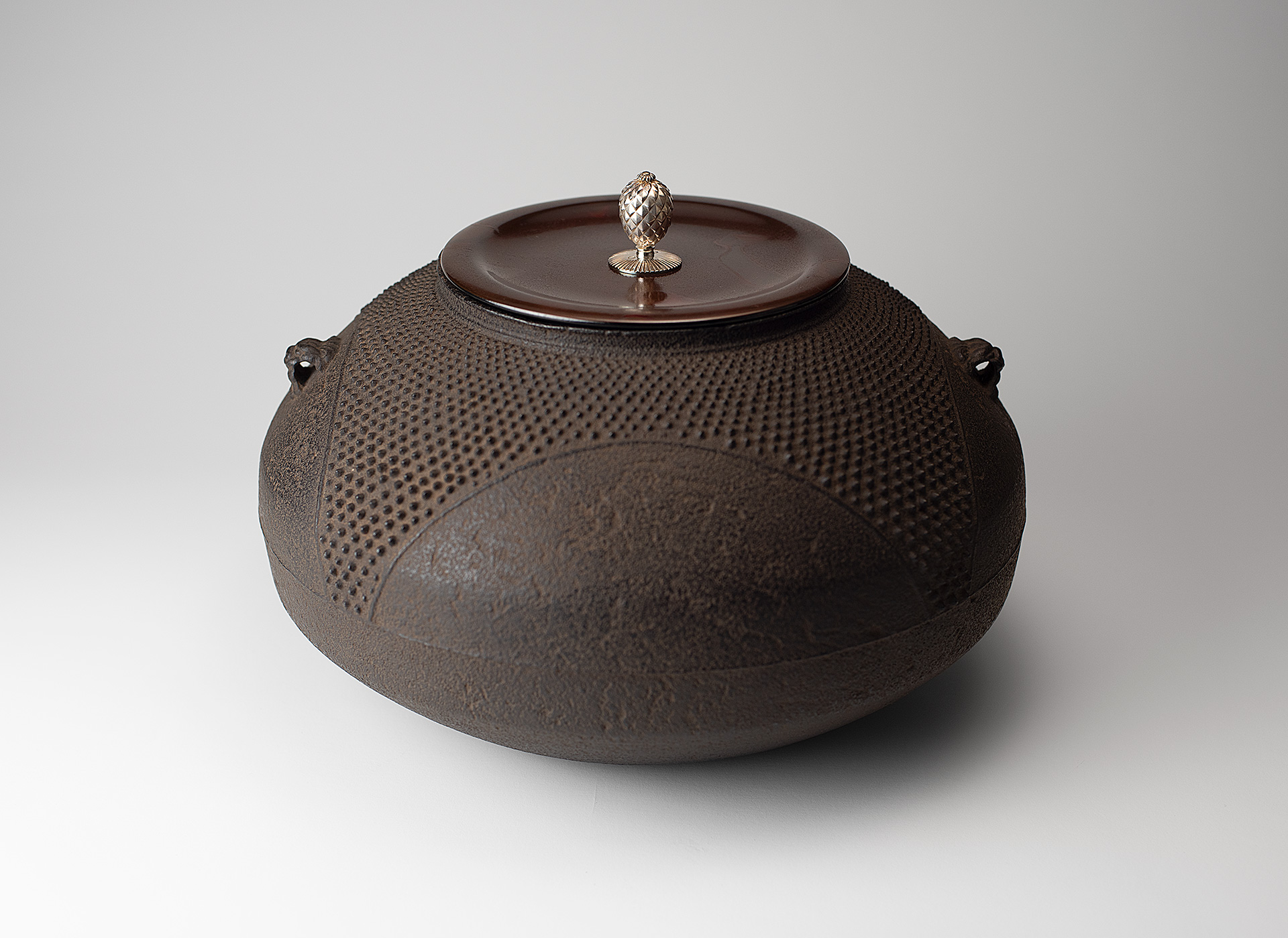 Born into a family of kettle makers spanning three generations, Kawata trained under the second-generation Shoju while cultivating a deep connoisseurship through the study of historical kettles. His practice does not seek novelty for its own sake; instead, it refines tradition through subtle geometry, symbolic detail, and a profound understanding of iron as a living material.