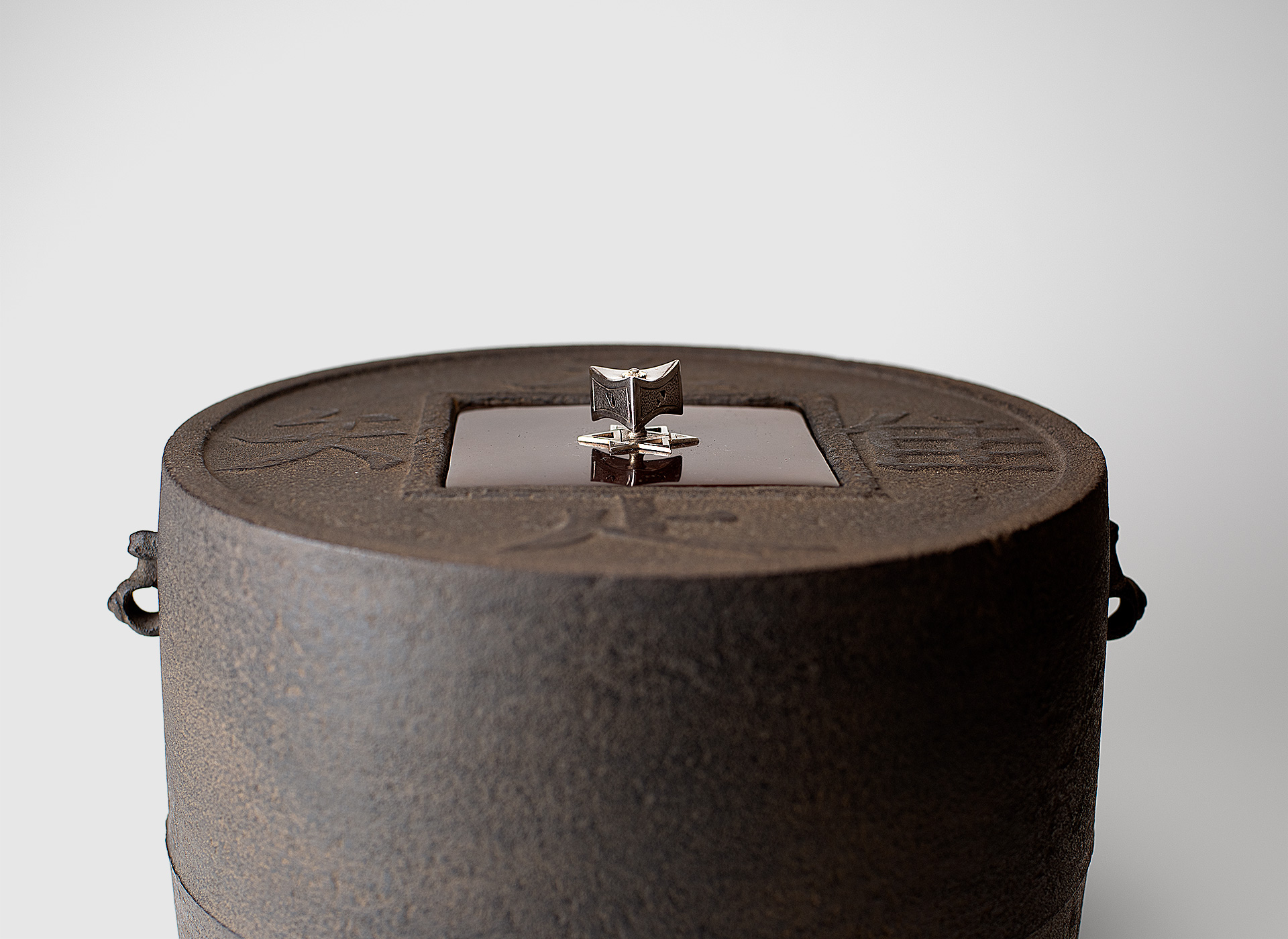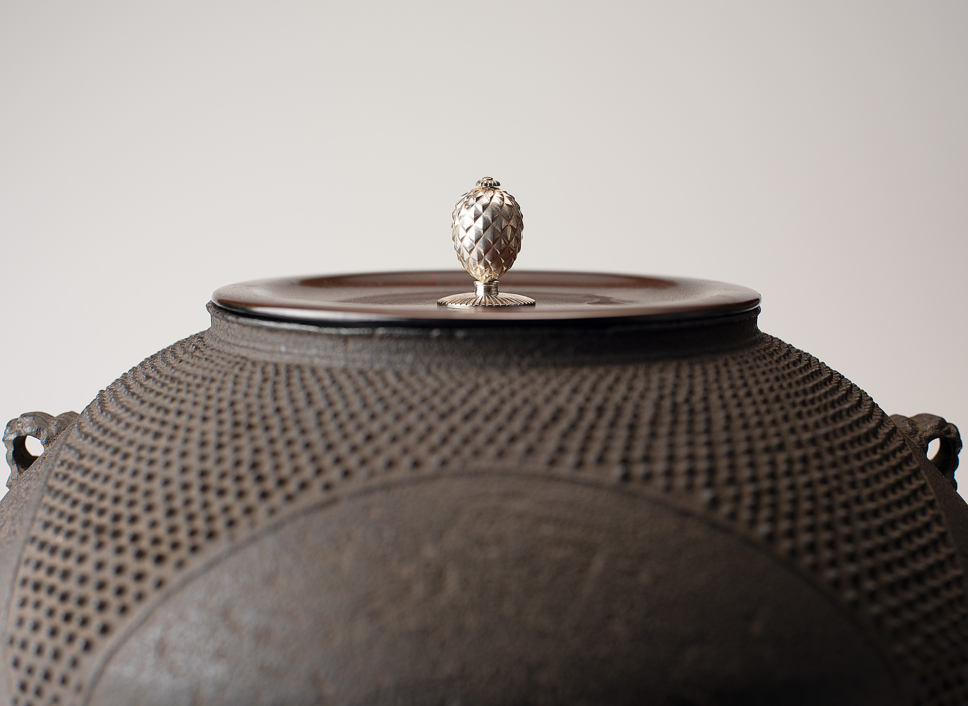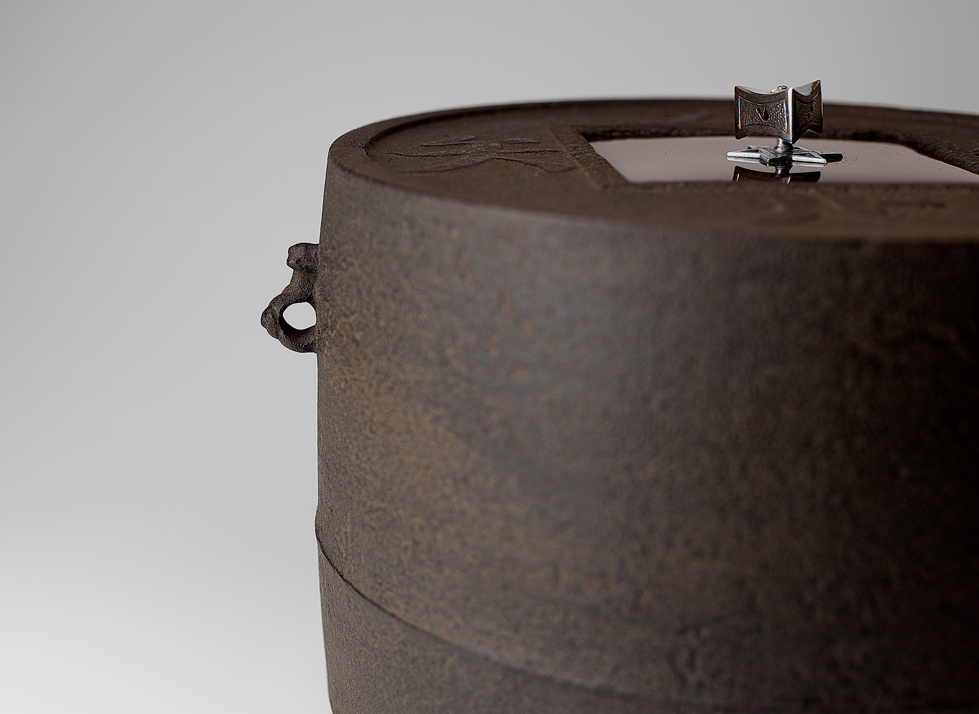 Inspired by the “Chisoku no Tsukubai” of Ryōan-ji Temple3, this Tea Ceremony Iron Kettle (Chagama) translates Zen philosophy into distilled geometric language.